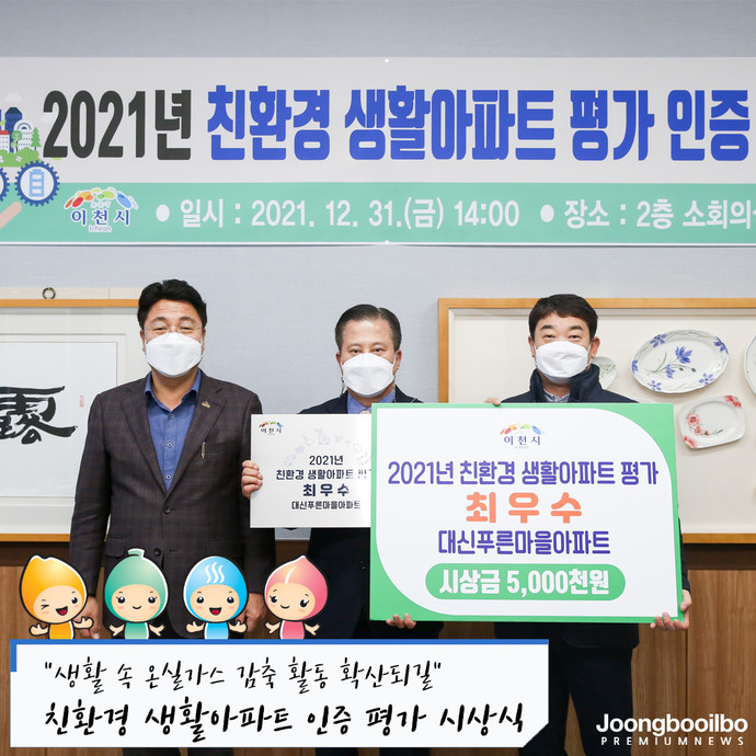 이천시가 2021년도 친환경 생활아파트 인증 평가를 한 결과 대신푸른마을아파트가 최우수상의 영예를 안았다.