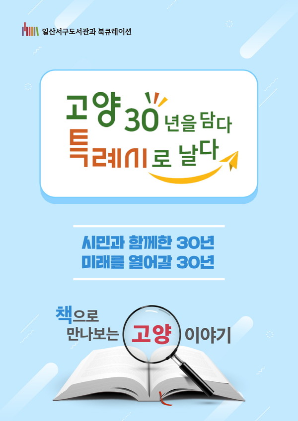 고양시 일산서구도서관과 5개 도서관(대화, 한뫼, 덕이, 가좌, 주엽어린이)이 고양시 시승격 30주년과 고양특례시 원년을 축하하며 '고양, 30년을 담다. 특례시로 날다!'라는 주제로 1월 한 달간 북큐레이션을 운영한다.