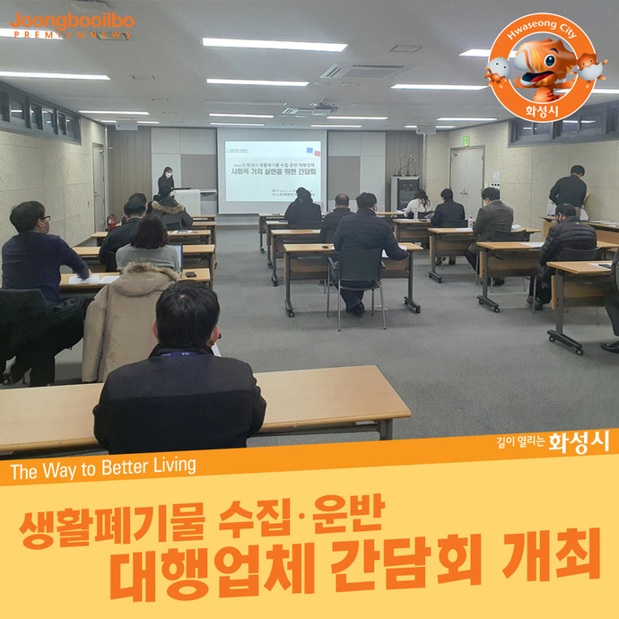 화성시는 12일 화성종합경기타운에서 생활폐기물 수집·운반 대행업체 12개사 대표와 함께 간담회를 개최했다.