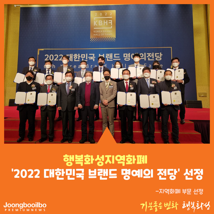 화성시는 ‘행복화성지역화폐’가 27일 ‘2022 대한민국 브랜드 명예의 전당'에서 지역화폐 부문에 선정됐다고 밝혔다.
