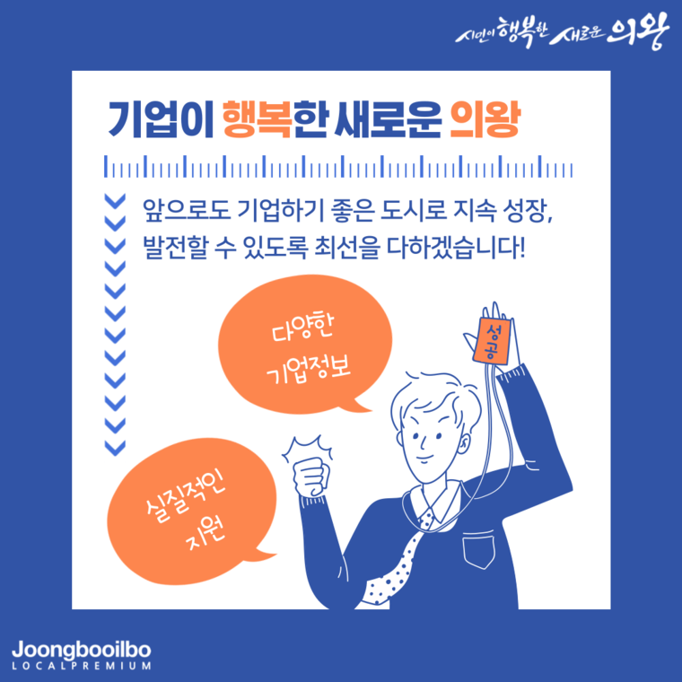 관련기사 "실질적인 지원 받는 계기 되길"…의왕시, 중소기업 지원사업 유관기관 합동 설명회 열어 의왕시는 지난 8일 의왕시청 대회의실에서 2022년도 중소기업 지원 사업에 대한 설명회를 개최했다고 9일 밝혔다.이번 설명회는 시 뿐 만 아니라 7개 유관기관인 경기지방중소벤처기업청, 중소벤처기업진흥공단, 기술보증기금, 경기신용보증재단, 소상공인진흥공단, 경기도경제과학진흥원, 경기테크노파크가 함께 관내 중소기업인들을 대상으로 자금·기술개발(R&D)·수출·판로개척 등 지원사업을 안내했다.이날 설명회에는 코로나19로 인해 사전신청자 49명에 한해 참석이 가능했으며, 참석하지 못한 기업인들을 위해서 유튜브(의왕시청) 채널을 통해 실시간 정영식 기자 ceres701@joongboo.com [기자메모] “나도 잘한 것 없지만” [기자메모] 철도가 마비된 세상을 상상해 보라 경기도공익활동지원센터, 중소벤처기업진흥공단 북부지부와 사회공헌활동 다른기사 보기 + ■ 당신의 제보가 뉴스가 됩니다. ▷즉시제보 : joongboo.com/jebo ▷카카오톡 : 'jbjebo' 검색해 채널 추가 ▷전화(사회부) : 031-230-2330 *네이버, 카카오, 유튜브에서도 중부일보를 구독하세요! 저작권자 © 중부일보 - 경기·인천의 든든한 친구 무단전재 및 재배포 금지 로그인하면 내지역 뉴스와 원본 지면을 보실 수 있습니다. 회원가입 로그인 댓글삭제 삭제한 댓글은 다시 복구할 수 없습니다. 그래도 삭제하시겠습니까? 비밀번호 닫기 기사 댓글 0 댓글 접기 로그인 후 이용 가능합니다. 댓글 내용입력 비회원 로그인 이름 비밀번호 댓글 내용입력 댓글쓰기 계정을 선택하시면 로그인·계정인증을 통해 댓글을 남기실 수 있습니다. 회원 로그인 비회원 글쓰기 이름 비밀번호 자동등록방지 로그인 옵션 창닫기