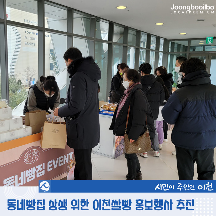 홍보행사에는 이천태극당, 베이커리심빵, 박서진베이커리 등 지역 내 소규모 빵집들이 참가해 이천시농업기술센터에서 개발해 기술이전한 이천쌀 베이커리 레시피, 베이커리용 이천쌀가루와 3색 고구마앙금을 재료로 만든 쌀눈빵, 쌀식빵, 쌀소금빵, 쌀쉬폰케익 등을 판매 홍보했다.