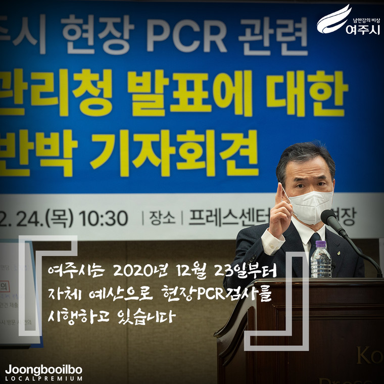이항진 여주시장은 24일 서울 프레스센터에서 현장PCR검사에 대한 질병관리청 입장에 반박하는 긴급 기자회견을 개최했다.