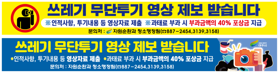 7일 시에 따르면 쓰레기 전담단속 공무원과 불법투기 단속원 등 6명을 채용해 생활쓰레기 무단투기 단속을 통해 ‘클린여주 만들기·불법쓰레기 제로화’를 본격 추진한다.