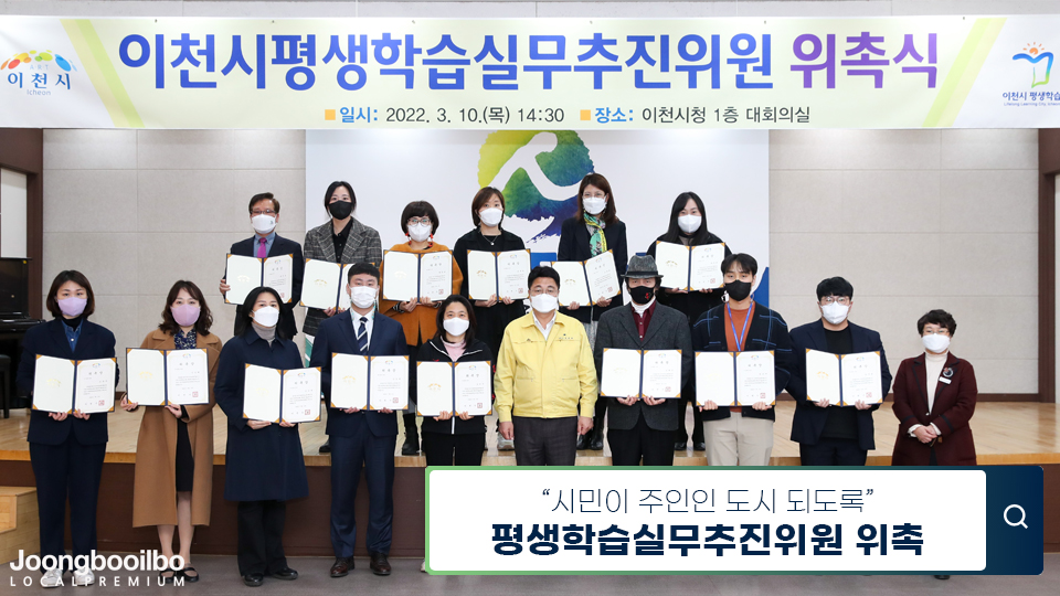 이들은 앞으로 평생학습 진흥사업 분야 조사 및 연구, 이천시평생학습축제 추진계획 수립 및 평가, 네트워크 활성화 방안 강구 등의 기능을 하게 된다.