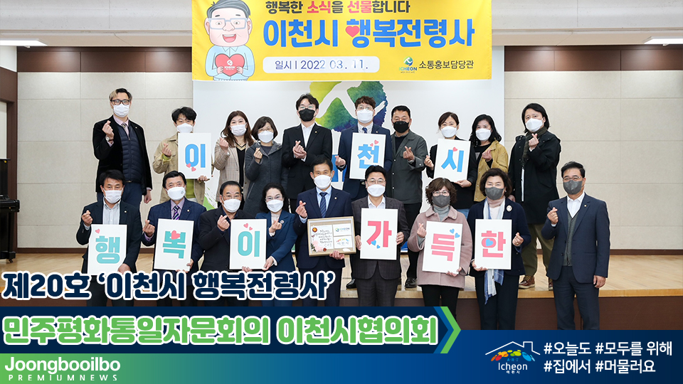 이날 칭찬릴레이는 19호 행복전령사로 선정된 대한적십자사 이천지구협의회의 박정환 회장이 지속 가능한 평화를 만들어내기 위한 활동을 이어나가고 있는 민주평화통일자문회의 이천시협의회를 20호 대상자로 추천해 진행했다.