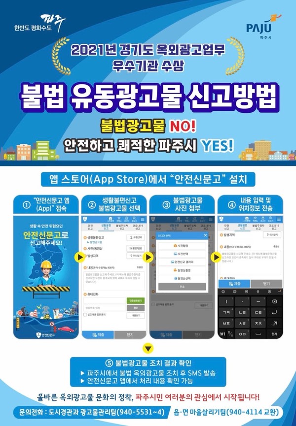 최종환 시장은 “파주시는 매년 개학기마다 학교 주변 불법광고물 일제 정비로 학생안전 위해요소를 사전에 차단해 쾌적한 교육환경을 조성하고 있다”며 “이번 정비는 옥외광고물 정비뿐만 아니라 읍·면·동과 합동 캠페인을 실시해 바람직한 광고문화 조성과 올바른 광고물에 대한 인식 제고에 기여하길 기대한다”고 말했다.