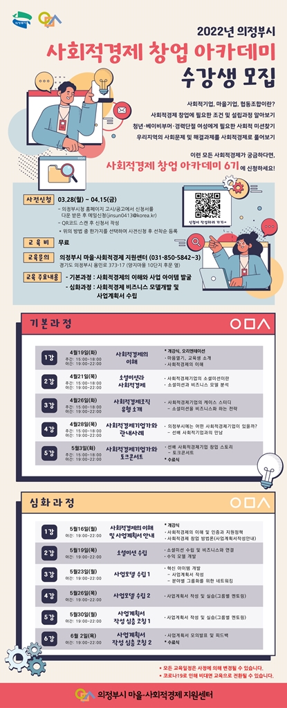 의정부시 마을·사회적경제 지원센터(이하 센터)는 오는 28일부터 4월 15일까지 의정부시 사회적경제 창업아카데미(이하 창업 아카데미) 수강생을 모집한다고 28일 밝혔다.