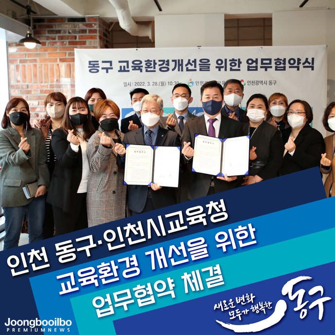 인천 동구는 28일 인천시교육청과 ‘동구 교육환경 개선을 위한 업무협약’을 체결했다고 밝혔다.