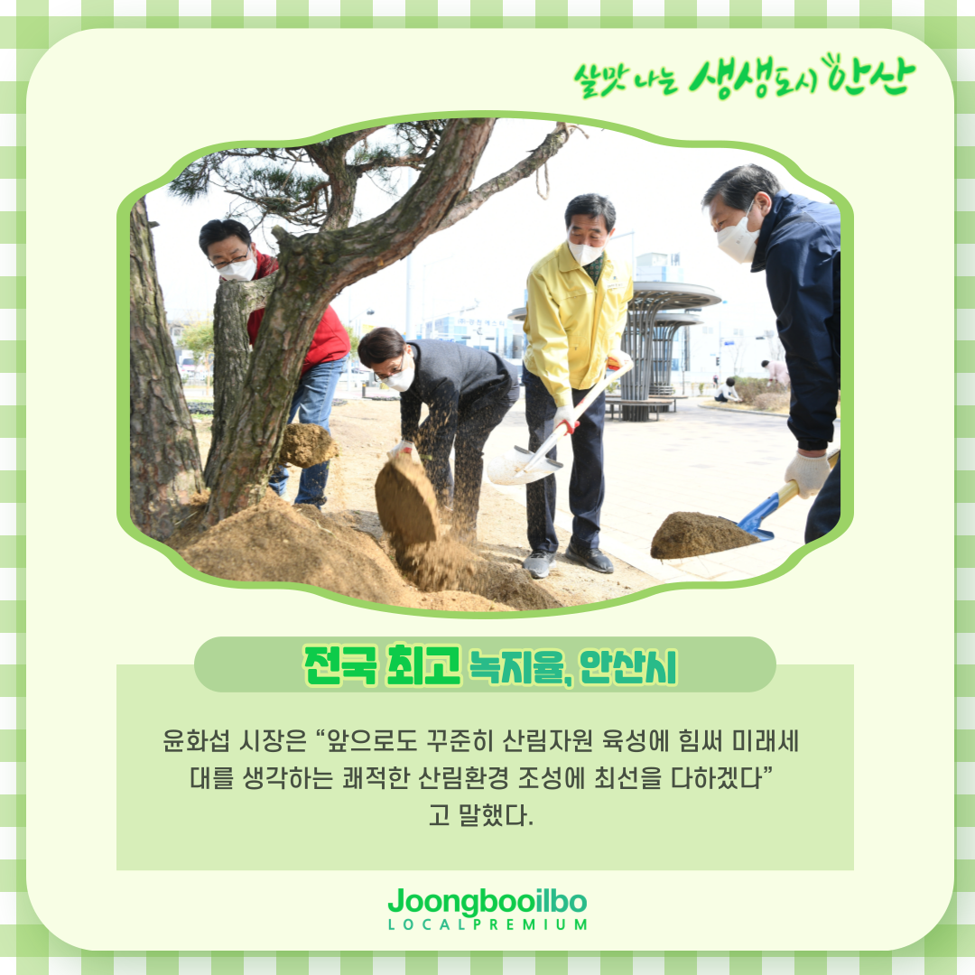 관련기사 "미래세대 위해"…안산시, 식목일 기념 나무 6천주 식재 안산시는 제77회 식목일인 5일 안산스마트허브 내 녹지에 조형소나무와 이팝나무 등 6천주를 심었다.시에 따르면 이날 단원구 목내동 538번지에서 열린 나무심기 행사에는 윤화섭 안산시장과 시민 등 모두 120여 명이 참석했다.이들은 미세먼지·기후변화에 따른 숲과 나무의 중요성을 함께 인식하며, 보다 나은 녹지 환경을 조성하기 위해 산림청이 ‘미세먼지 저감 수종’으로 권장하는 조형소나무와 이팝나무 등 교목 45주와 관목 등 모두 6천주를 심었다.윤화섭 시장은 “앞으로도 꾸준히 산림자원 육성에 힘써 미래세대를 생각하는 쾌적한 산림환경 조 정영식 기자 ceres701@joongboo.com [기자메모] “나도 잘한 것 없지만” [기자메모] 철도가 마비된 세상을 상상해 보라 경기도공익활동지원센터, 중소벤처기업진흥공단 북부지부와 사회공헌활동 다른기사 보기 + ■ 당신의 제보가 뉴스가 됩니다. ▷즉시제보 : joongboo.com/jebo ▷카카오톡 : 'jbjebo' 검색해 채널 추가 ▷전화(사회부) : 031-230-2330 *네이버, 카카오, 유튜브에서도 중부일보를 구독하세요! 저작권자 © 중부일보 - 경기·인천의 든든한 친구 무단전재 및 재배포 금지 로그인하면 내지역 뉴스와 원본 지면을 보실 수 있습니다. 회원가입 로그인 댓글삭제 삭제한 댓글은 다시 복구할 수 없습니다. 그래도 삭제하시겠습니까? 비밀번호 닫기 기사 댓글 0 댓글 접기 로그인 후 이용 가능합니다. 댓글 내용입력 비회원 로그인 이름 비밀번호 댓글 내용입력 댓글쓰기 계정을 선택하시면 로그인·계정인증을 통해 댓글을 남기실 수 있습니다. 회원 로그인 비회원 글쓰기 이름 비밀번호 자동등록방지 로그인 옵션 창닫기
