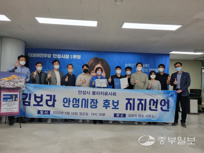 안성시물리치료사회가 김보라 더불어민주당 안성시장 후보를 지지하고 나섰다.