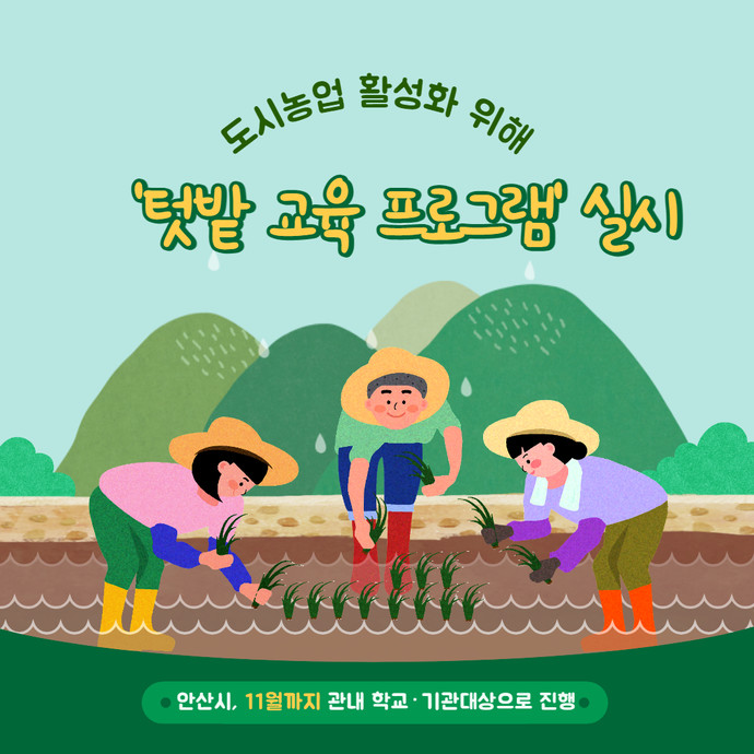 관련기사 "도시농업 활성화 위해"…안산시, 오는 11월까지 '텃밭 교육 프로그램' 실시 홍지예 기자 hjy@joongboo.com 기자페이지 저작권자 © 중부일보 - 경기·인천의 든든한 친구 무단전재 및 재배포 금지 SNS 기사보내기 페이스북(으)로 기사보내기 트위터(으)로 기사보내기 카카오톡(으)로 기사보내기 네이버밴드(으)로 기사보내기 URL복사(으)로 기사보내기