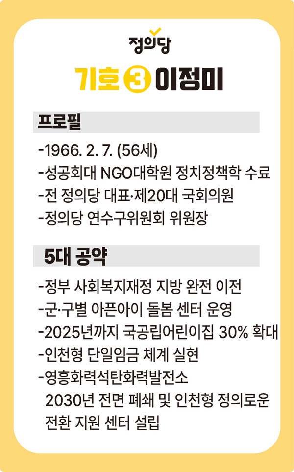 인천의 새로운 미래와 변화에 대한 열망을 이정미에게 투표로 모아주길 인천시민들에게 호소합니다.