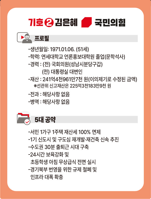 집권여당의 힘 있는 후보, 경기도와 미래를 함께 할 71년생 젊은 후보, 중앙정부와 서울시, 경기도의 원팀 후보, 저 김은혜가 진정으로 경기도민을 위해 일하겠습니다.