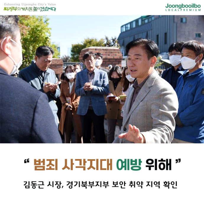 김동근 의정부시장이 10월 19일 한국법무보호복지공단 경기북부지부 일대를 관련 부서 및 동 주민들과 함께 현장 확인하고 보안 취약지역을 직접 살폈다.