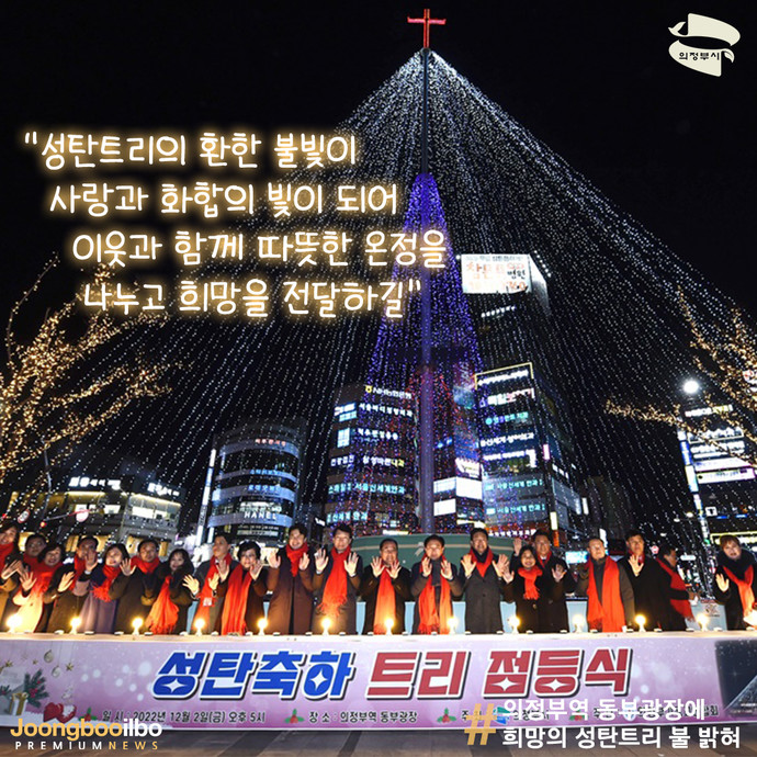 의정부시는 지난 2일 의정부역 동부광장에서 의정부 기독교연합회와 함께 ‘성탄트리 점등식’행사를 개최했다.