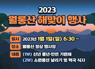 월롱산 해맞이 행사는 코로나19로 인해 3년 만에 열리는 행사로, 신년 풍년·안전기원 제례를 시작으로 ‘소원을 실은 친환경 풍선 날리기’가 진행된다. 풍선 날리기는 산불 예방 및 안전을 위해 기존에 진행했던 소원지 태우기 행사 대신 마련됐다. 2부 행사로 해맞이 후 즉석 떡국 및 차 등을 제공할 예정이다.