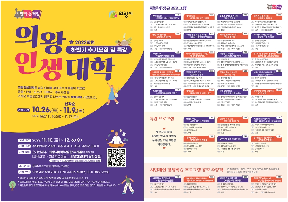 의왕시가 ‘의왕인생대학’ 하반기 수강생을 모집한다.