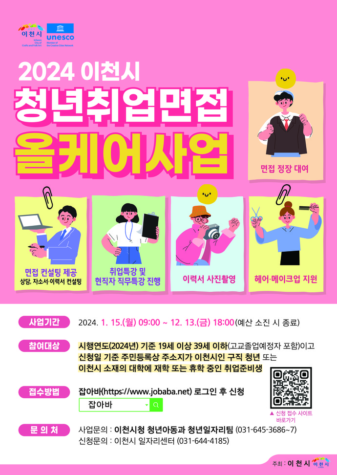 이천시는 오는 15일부터 이천시 청년 구직자들을 대상으로 ‘청년취업 면접 올케어 사업’을 개시한다고 12일 밝혔다.