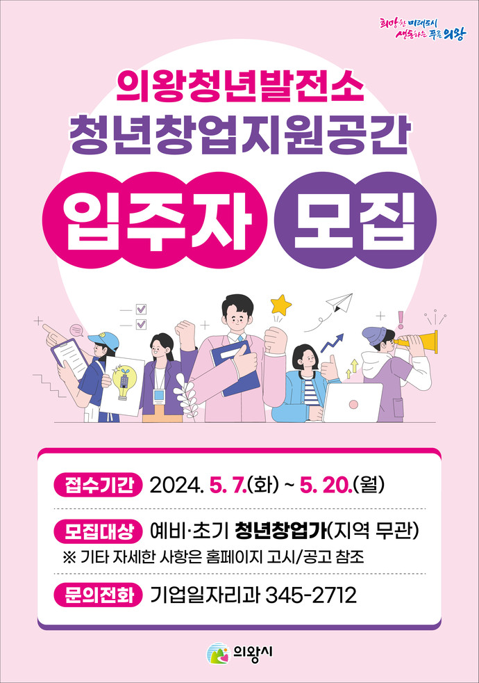 공간 현황 및 임대료, 입주신청서 등은 시청홈페이지에서 확인할 수 있으며, 자세한 사항은 의왕시 기업일자리과(031-345-2712)로 문의하면 된다.
