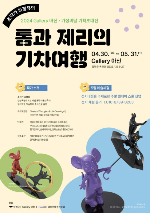 양평군 아신갤러리는 5월 가정의 달을 맞아 톰과 제리 캐릭터를 활용한 최정유 조각가의 ‘톰과 제리의 기차여행’을 선보인다고 3일 밝혔다.