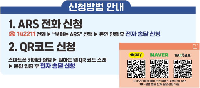 전자송달 신청 시 고지서 1매당 500원의 세액공제 혜택이 제공되며 자동이체 시 500원이 추가 공제된다. 공제 혜택뿐만 아니라 고지서를 모바일로 정확하게 송달받고 one-stop으로 확인, 납부도 할 수 있다.