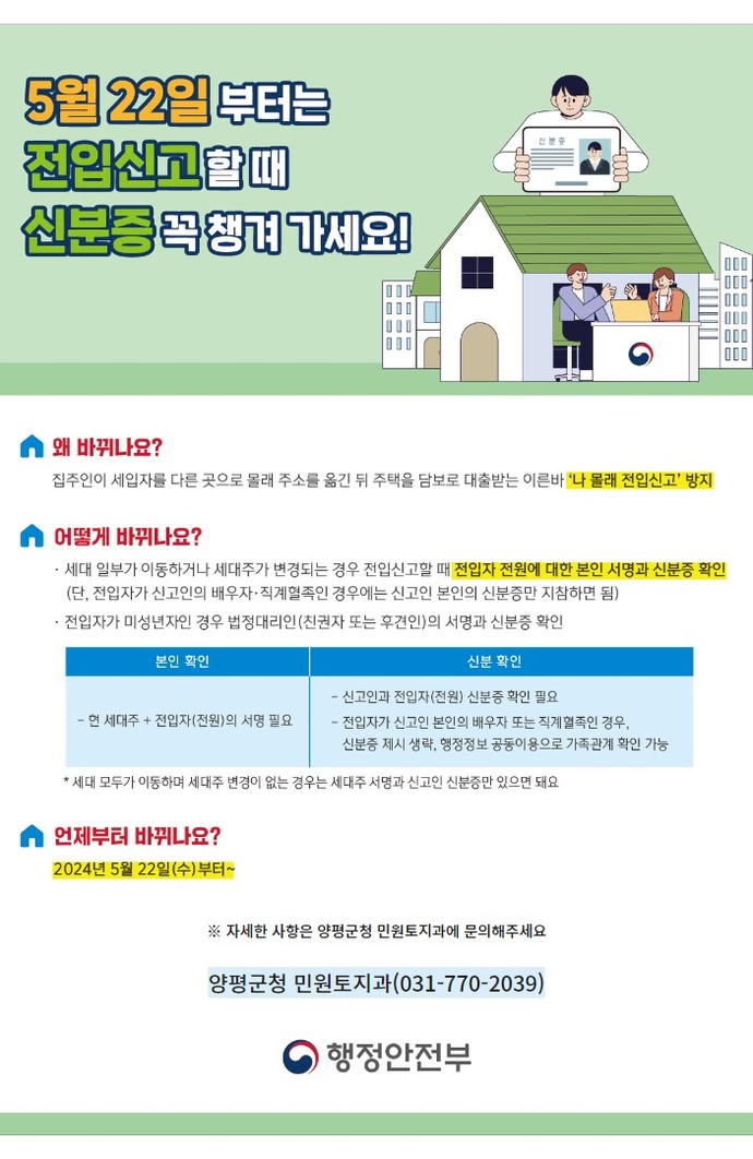 양평군은 개정된 ‘주민등록법 시행령’에 따라 본인확인 절차를 강화한다고 24일 밝혔다.