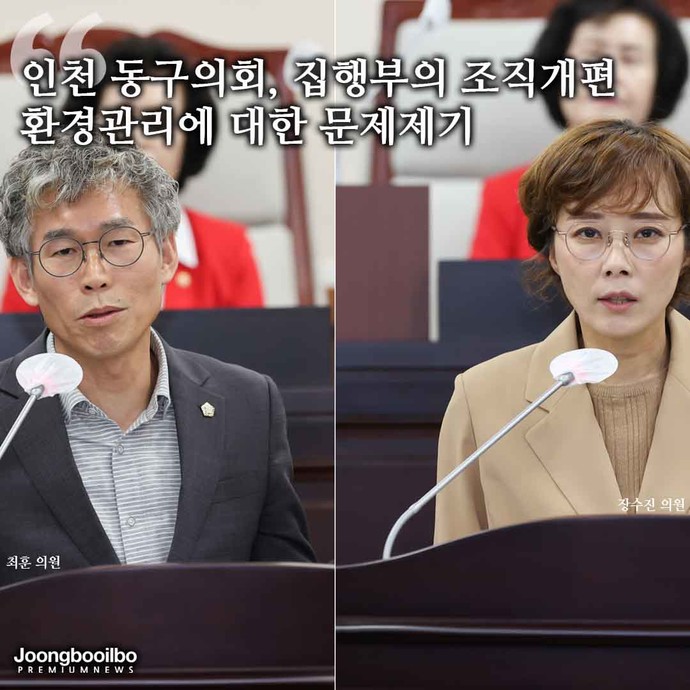 인천 동구의회에서 집행부의 조직개편과 환경관리에 대한 문제제기가 나왔다.