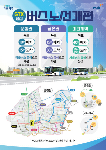 시는 각 노선의 원활한 운행을 위해 연말까지 시내/마을버스 40대를 증차할 예정이다. 증차가 완료되면 ▶운정권은 67대 ▶금촌권은 23대 ▶그 외 지역은 9대의 버스가 GTX 운정역까지 다니게 된다.
