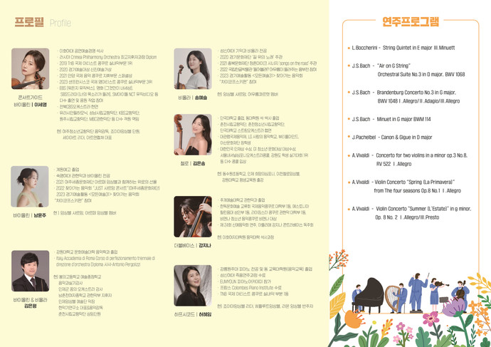 7월 ‘아트&뮤직 려’ 프로그램은 ‘현의 미학’이라는 주제로, 바이올린 및 콘서트가이드 이세영, 바이올린 남윤주, 바이올린·비올라 김은평, 비올라 송예슬, 첼로 김은송, 더블베이스 강지나, 하프시코드 허혜임이 참여해 다양한 현악기의 선율을 선보인다.