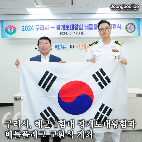구리시는 지난 12일 시장 집무실에서 해군 1함대 광개토대왕함과 배틀플래그 교환식을 개최했다.