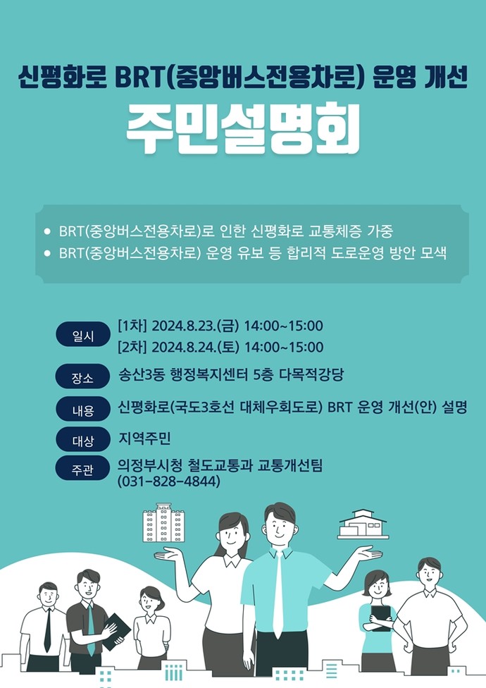 의정부시가 오는 23일과 24일 양일간 송산3동행정복지센터에서 신평화로의 중앙버스전용차로 운영 개선을 위한 주민설명회를 개최한다고 21일 밝혔다.