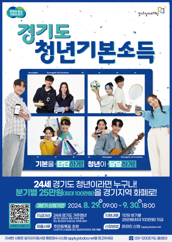 9월 30일까지 경기도 일자리플랫폼 ‘잡아바’ 회원가입 후 온라인 또는 모바일로 신청 가능하며, 기존 수령자 중 자동신청에 동의한 대상자는 별도 신청 없이 청년기본소득을 받을 수 있다.