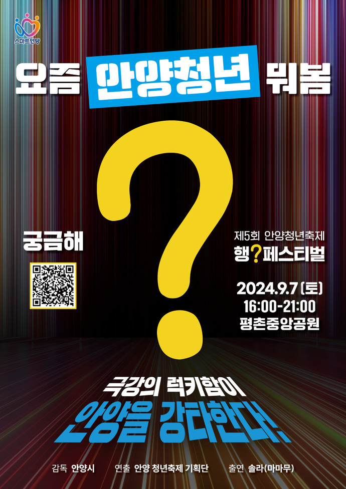 안양시는 28일, 제5회 안양청년축제가 오는 9월 7일 오후 4시부터 9시까지 평촌중앙공원 일대에서 열린다고 밝혔다. 이번 축제는 안양시가 주최하고 안양청년축제기획단이 주관하며, 청년들이 직접 기획부터 준비까지 참여해 만들어졌다.