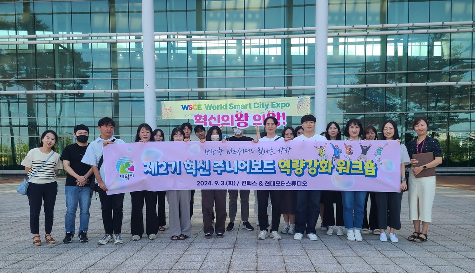 의왕시는 지난 3일 '제2기 혁신 주니어보드 역량 강화 워크숍'을 개최했다고 밝혔다. 이번 워크숍에는 MZ 세대 공직자 30명으로 구성된 8개 팀의 주니어보드가 참여해 혁신 기술을 직접 체험하고 정책 발굴 역량을 강화했다.