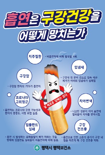 보건소 관계자는 “지역주민에게 흡연으로 인한 구강건강 문제뿐 아니라 다양한 건강 문제를 알리고 금연 선도 도시 평택시의 금연 환경 조성을 위해 다양한 홍보활동을 지속적으로 전개하겠다”라고 밝혔다.