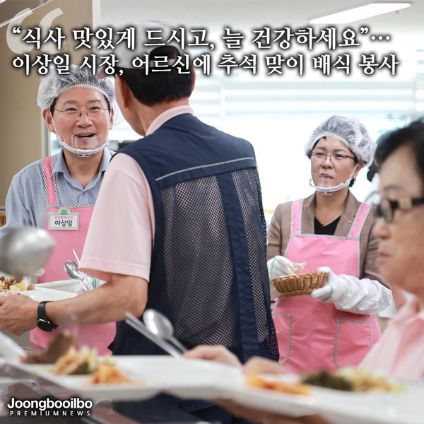 이날 이상일 시장은 “식사 맛있게 드시고, 늘 건강하세요”라며 추석 인사를 하고, 몸이 불편한 어르신들의 식사를 도왔다.