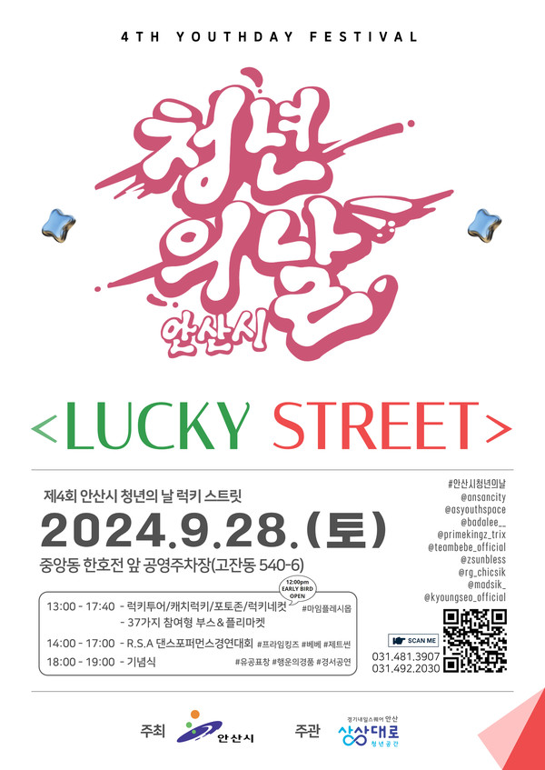 이민근 안산시장은 "청년들이 서로의 꿈을 응원하고 다양한 경험을 나눌 수 있는 소중한 기회가 될 것"이라며, "시민들에게도 다채로운 볼거리와 즐길 거리를 제공하기 위해 최선을 다하겠다"고 전했다.