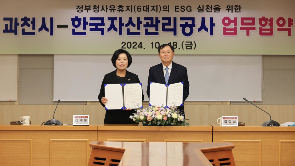 과천시와 한국자산관리공사는 최근 정부과천청사 유휴지(6대지)를 시민 친화적 공간으로 탈바꿈하기 위한 'ESG 실천을 위한 업무협약'을 체결했다.