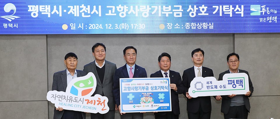 한편, 평택시와 제천시는 2022년 자매결연을 맺은 이후 지속적으로 협력관계를 이어오고 있다. 올해 8월에는 제천시청에서 양 도시 농협과 함께 '평택·제천 이음 1274' 업무협약을 체결하며 고향사랑기부제 활성화에 나섰다.