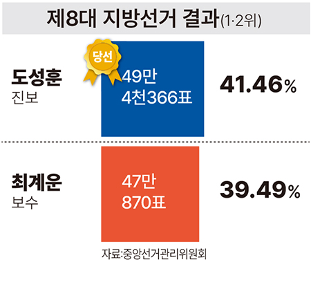 그는 당시 진보와 보수를 각각 대표했던 도성훈 교육감과 최계운 전 이사장 ‘양강 구도’에서 19.03%를 획득하는 존재감을 보였다.