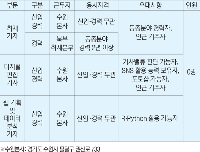 -웹기획 및 데이터 분석기자(수원본사/경력무관)